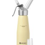 Potpuno izrađen od aluminijuma. Komplet od 3 polipropilenske mlaznice, kao i četkice za čišćenje. Nije prikladno za tople sosove. Potrebne su patrone (N2O) za rad, nisu uključene.