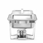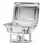 Model Economic Poklopac i stalak od visokog sjaja Sadrži držače za gorivo posude za podgrevanje hrane i tavu od nerđajućeg čelika duboku 65 mm Prikladna za tave duboke do 65 mm.