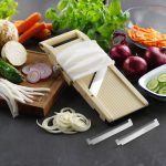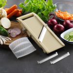 Uključeno: 3 zamenjive nazubljene oštrice za rezanje julienne: 1 mm, 2 mm, debljine 8 mm.