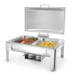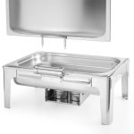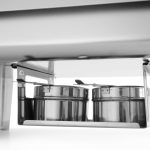 Opremljena odstranjivom vodenom tavom, GN 1/1, dubokom 65mm i 2 držača limenki s gorivom za posudu za podgrevanje hrane.
