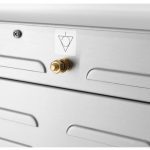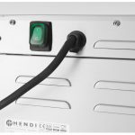 Tava od nerđajućeg čelika i držač za pladnjeve, prikladna za GN 1/1 spremnike, rešetke i pladnjeve kao i pekarske pladnjeve od 600×400 mm, na tri stupnja.