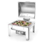 Opremljena odstranjivom vodenom tavom, GN 2/3, dubokom 65mm i držačem limenke s gorivom za posudu za podgrevanje hrane.