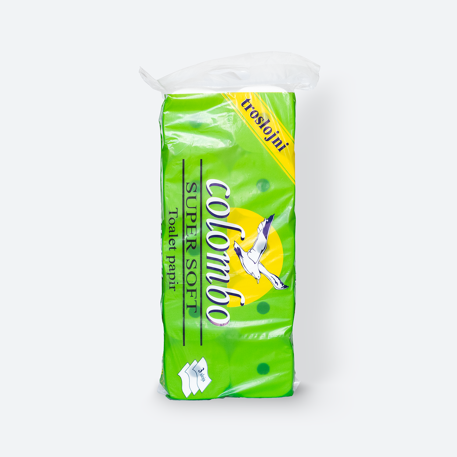 Toalet papir Colombo 10/1 Zelena brenda ProPapir je troslojni toalet papir od 100% celuloze, izrađen od sirovine 3x15 gr/m2 koja obezbeđuje mekoću, dobro upijanje i prijatan osećaj tokom korišćenja. Pakovanje sadrži deset rola ukupne mase 660 g, sa hilznom FI 20, prečnikom 12 cm i visinom 9.7 cm, što ga čini idealnim za domaćinstva, kancelarije, ugostiteljske lokale i javne sanitarne prostore sa čestom upotrebom. Praktično transportno pakovanje omogućava jednostavno snabdevanje, dok povoljna potrošnja čini Colombo 10/1 Zeleni ekonomičnim izborom za Beograd i celu Srbiju.